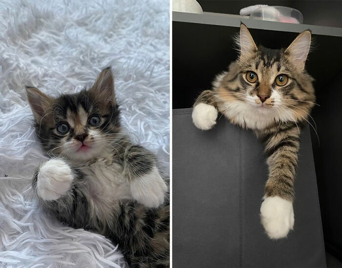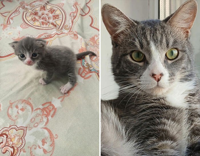 These before-and-after photos not only show how much these cats have grown, but also highlight the love, care, and attention they’ve received throughout their journey. Scroll down to check out some of the most heartwarming kitty transformations shared by proud cat parents!